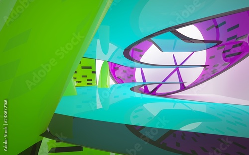 abstract architectural interior with colored smooth sculpture. 3D illustration and rendering