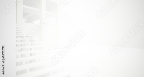 Abstract architectural white and glass gradient color interior of a minimalist house with large windows.. 3D illustration and rendering.