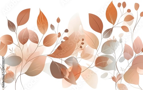 Abstract arrangement of delicate orange and brown leaves showcasing a harmonious blend of shapes and hues, evoking a feeling of warmth and tranquility.