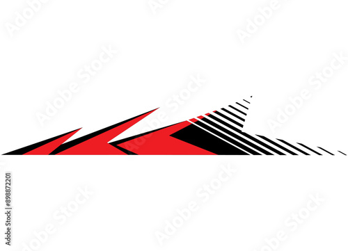 Abstract arrow. Red and black sharp striped pattern on a white background. Sports design element for car body, moto, boat, sportswear and toys, Modern vector background from lines