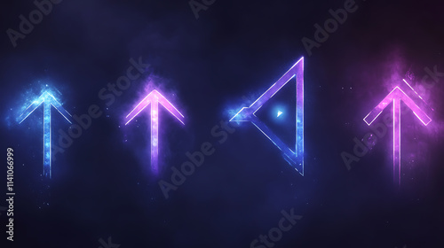 Abstract arrow shapes with light effects in the styles of blue and purple colors on a dark background
