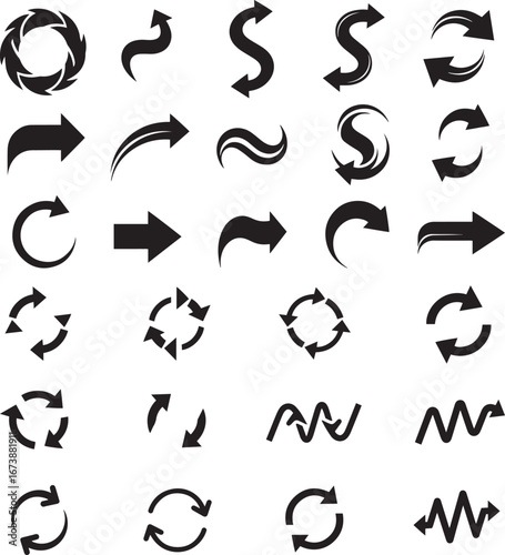 Abstract Arrow Vector Icon Set, Direction, Rotation, Loop, Refresh Symbols