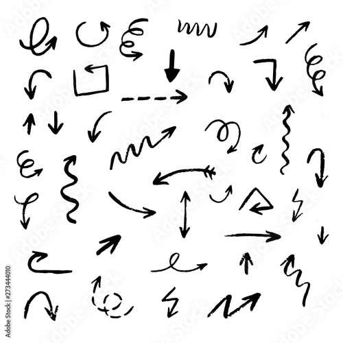 Abstract arrows in hand drawn style for concept design. Doodle illustration. Vector template for decoration