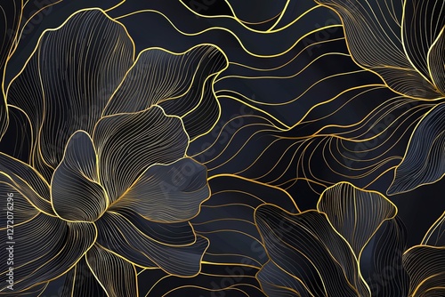 Abstract art background vector. Luxury minimal style wallpaper with golden line art flower and botanical leaves, Organic shapes, Watercolor.