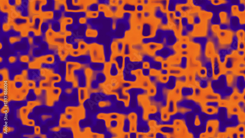 Abstract art features orange and purple blended shapes