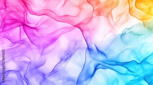 Abstract art of vibrant rainbow colors swirling in a fluid motion. The image features a gradient transition from pink to purple to blue and teal.