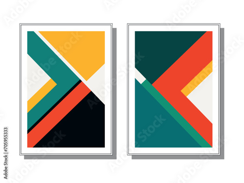 Abstract art print poster set. Geometric colored contemporary wall decor. Vector illustration.