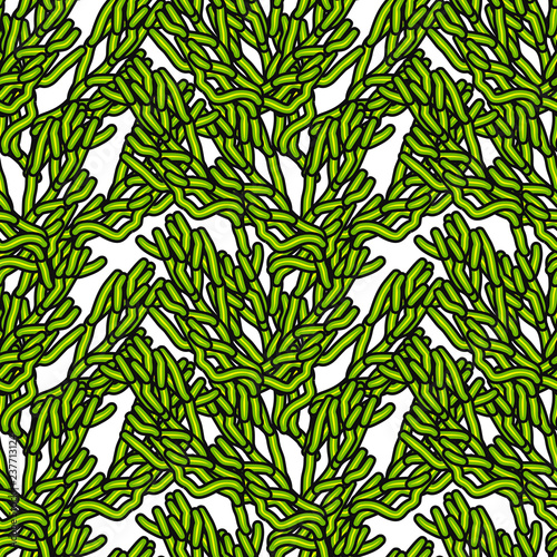 Abstract art vector seamless pattern hand drawn green splinters on a white background for ceramic tiles, textile, wrapping, furnishings, upholstery, cover page, banner, web site, wall decor.