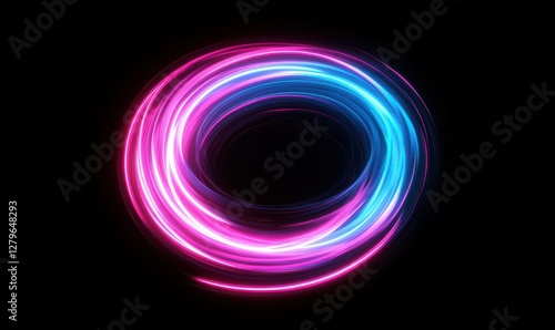 Abstract artistic swirl of vibrant pink and blue neon light trails against a dark backdrop, symbolizing energy and creativity