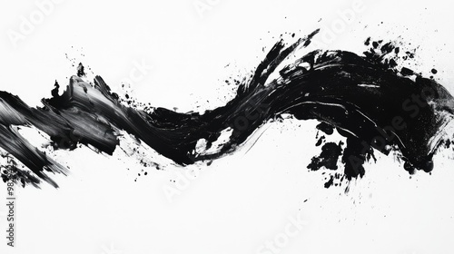 Abstract artwork featuring black elements set against a white background