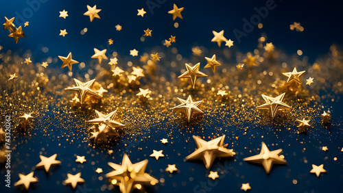 Abstract background composed of golden stars and gold dust, blue and gold tones, holiday celebration