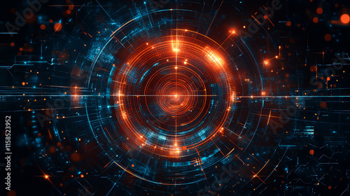Abstract background concept shield and circle shield cyber security online theft protection on hi tech blue