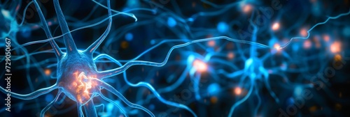 Abstract background depicting a network of neurons with glowing centers and extending dendrites in a blue tone