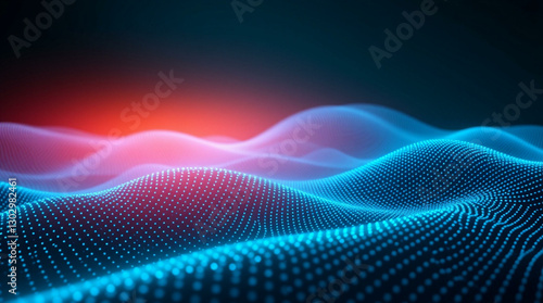 Abstract background digital blue wave with glowing particles and red highlights, perfect for technology, innovation, and digital design projects.