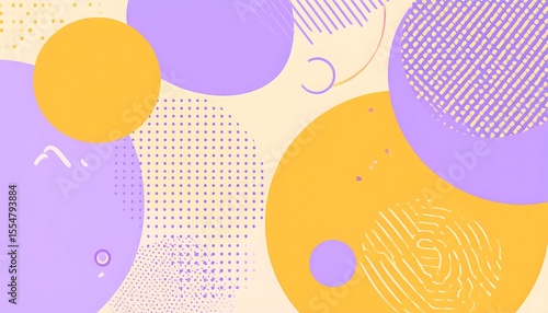 Abstract background featu yellow and purple circles with textures and patterns creating a modern and playful design suitable for various creative applications.