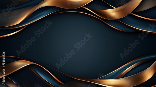 Abstract background featuring a striking golden swirly pattern on a textured blue grunge surface with ample copy space. The elegant interplay between the gold accents and the blue backdrop creates a s