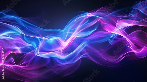 Abstract background featuring flowing waves of luminous blue and pink smoke or energy streams against a dark backdrop. Represents fluidity, energy, dynamic motion.