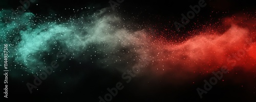 Abstract background grainy green red glowing color shape, black backdrop noisy texture dark banner poster design, Generative AI