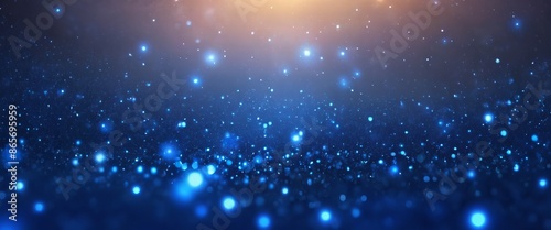 Abstract background image with bokeh in blue and purple tones, creating the effect of a shimmering and magical space with bright spots of light, wide banner