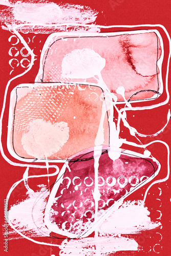 Abstract background, multicolor art collage. Creative pattern design for print invitation card, postcard. Drawing poster, colorful wallpaper. Red, pink, white colors
