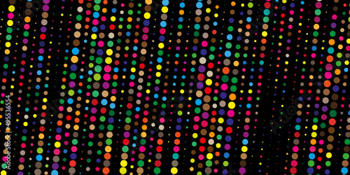 Abstract background of colored dots of different sizes on black background