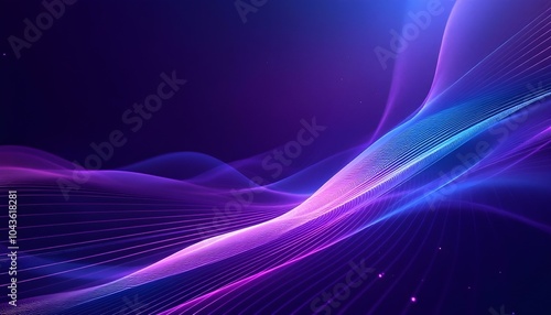 Abstract background of luxurious purple and blue metallic waves. Perfect for designs related to technology, luxury, and modern aesthetics. Abstract neon blue and purple glowing lines background