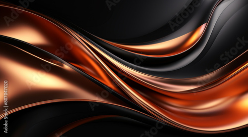 Abstract background of rich copper liquid metal with waves and stars, dark silver, and black colors