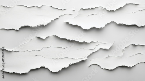 Abstract Background of Torn White Paper Texture with Layered Rips and Soft Shadows, Ideal for Design and Artistic Applications