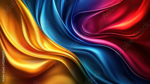 Abstract Background of Vibrant silk fabric in rich colors of red, blue, gold, and purple