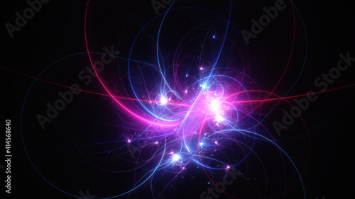 Abstract background, smooth blue and red lines on a black background.