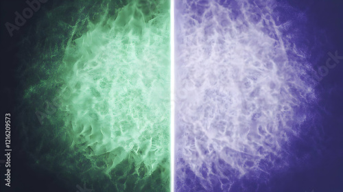Abstract Background Splits into Green and Purple with Subtle Noise and Light Effects