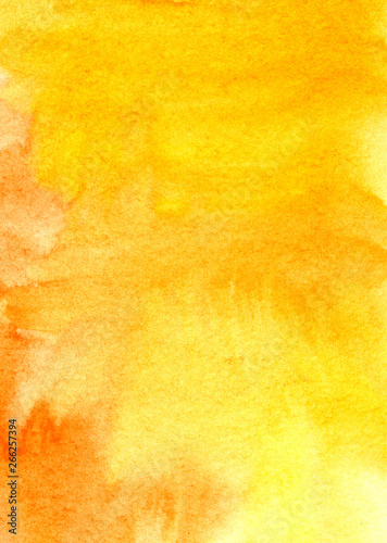 Abstract background. The texture of the paper, tinted with light and deep stains of yellow watercolor.