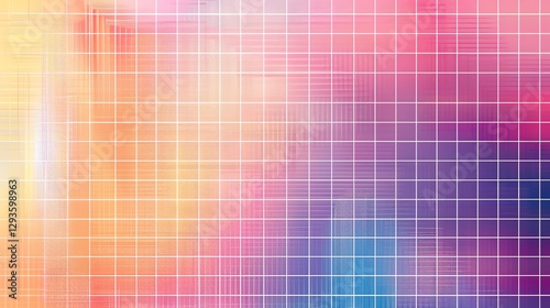 Abstract background with a grid pattern over a gradient of orange, pink, purple, and blue.