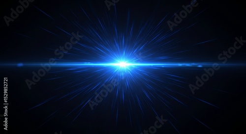 Abstract Background with Blue Light Burst Star and Lens Flare Effect