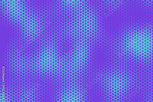 Abstract background with bluish purple and turquoise triangle dots. Triangle halftone geometric background. Halftone triangular retro 80s pattern. Minimal style retro dynamic wallpaper.