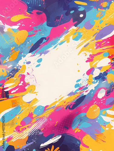 Abstract background with bright, vibrant colors like yellow, pink, and blue with a large white space in the center.