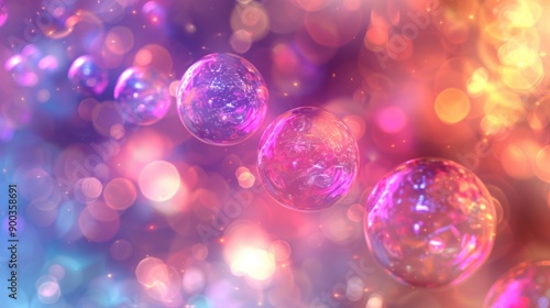 Abstract background with colorful bokeh lights and iridescent orbs. Perfect for festive, celebratory, or whimsical designs.