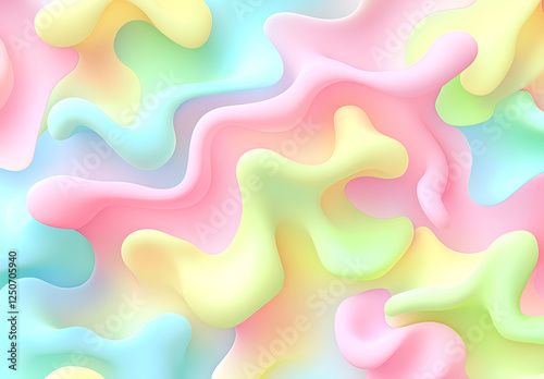 Abstract background with colorful wavy shapes, vector illustration, pastel colors, gradient effect, smooth curves, play of light and shadow, futuristic style, soft focus, minimalist design,