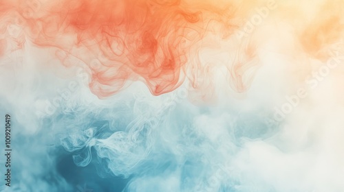 Abstract Background with Copy Space in Soft Orange and Blue Tones, Watercolor Style with Smoke-Like Elements
