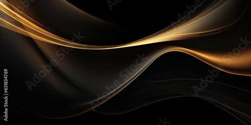 Abstract background with elegant curves and shiny elements. Modern black and gold design for fashion cover. Luxurious art with smooth golden glow lines