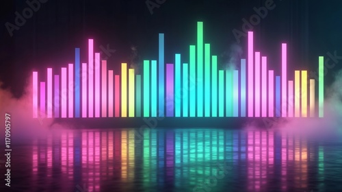 Abstract background with equalizer effect. Dynamic neon equalizer effect with music waves, glowing in vibrant neon colors. The equalizer waves pulse and shift in rhythm. generative AI