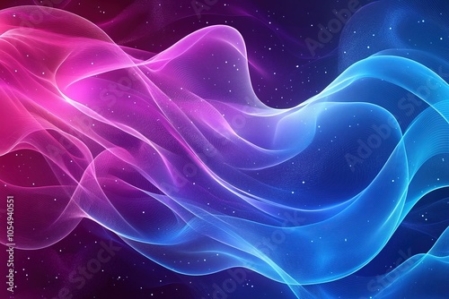Abstract background with flowing neon pink and blue waves and a dark space background with tiny white stars.