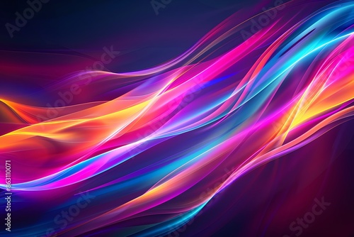 Abstract background with flowing neon waves. Vivid colors of pink, blue, orange, and purple. Perfect for digital art, cyberpunk, or music-themed projects.