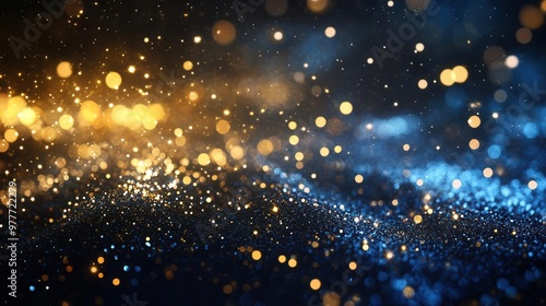 abstract background with glittering blue and gold lights on black digital art