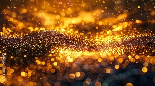 Abstract background with golden glitter and bokeh lights, gold background for celebration or award ceremony