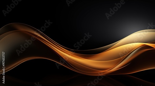 Abstract background with golden waves on black.