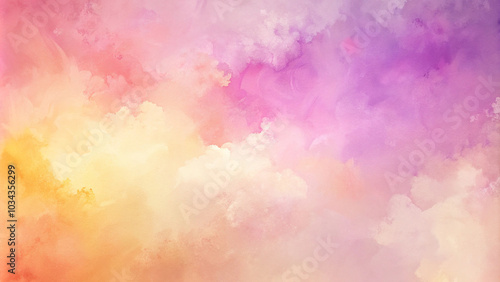 Abstract background with grainy gradients moving from deep purples to soft oranges. Abstract watercolor background painting in pastel pink purple and orange cloudy colors with painted watercolor
