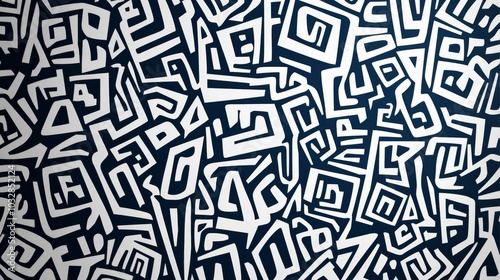 Abstract background with hieroglyphs. The chaotic arrangement of lines. Plain blue and white pattern