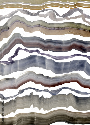 Abstract background with horizontal gray and beige stripes. Watercolor wavy lines on a white background.