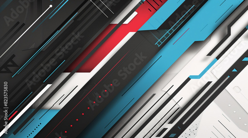abstract background with intersecting arrows, lines in a gray black white red blue color scheme. The concept of complex decisions in business, politics, and international relations